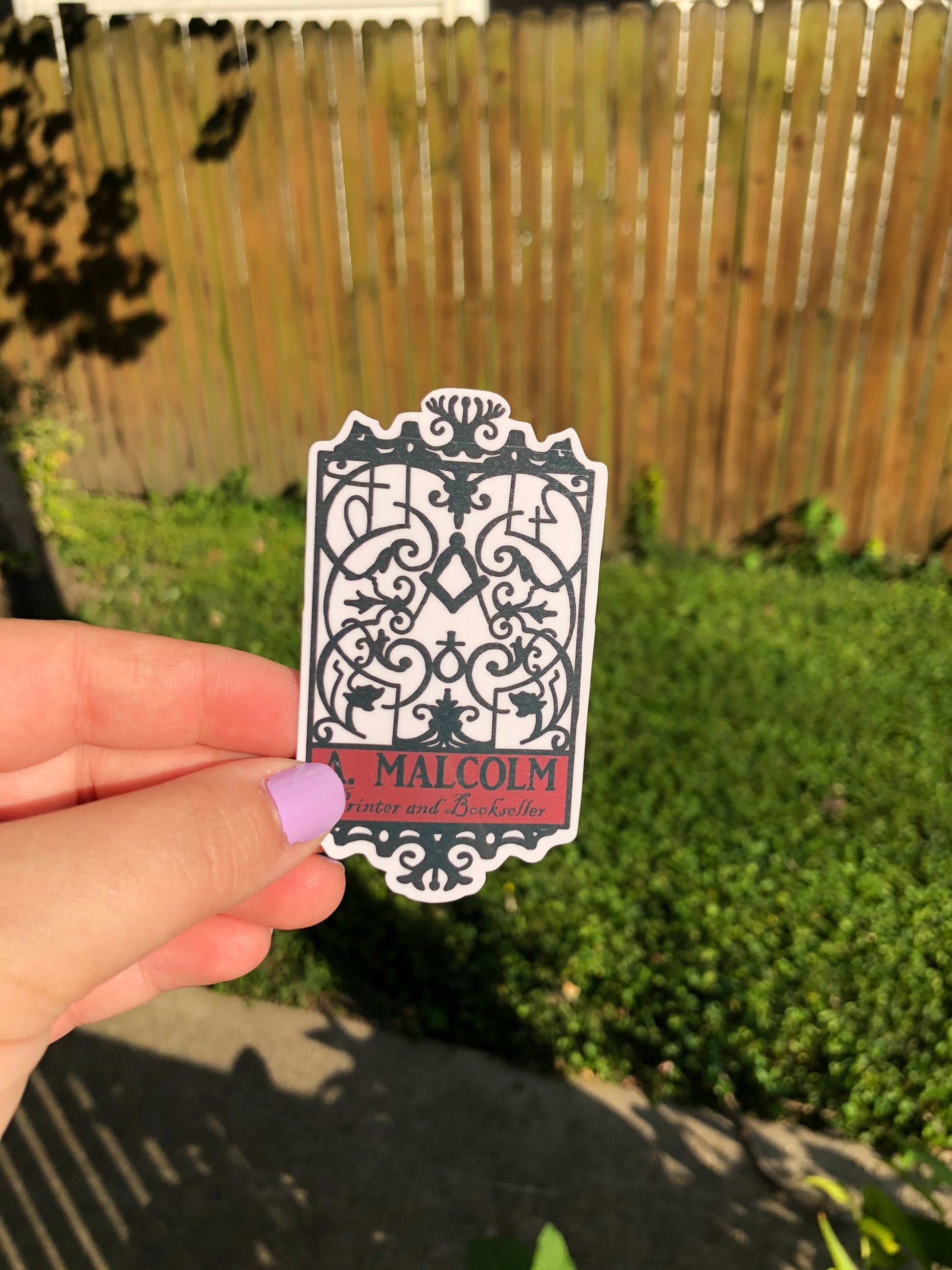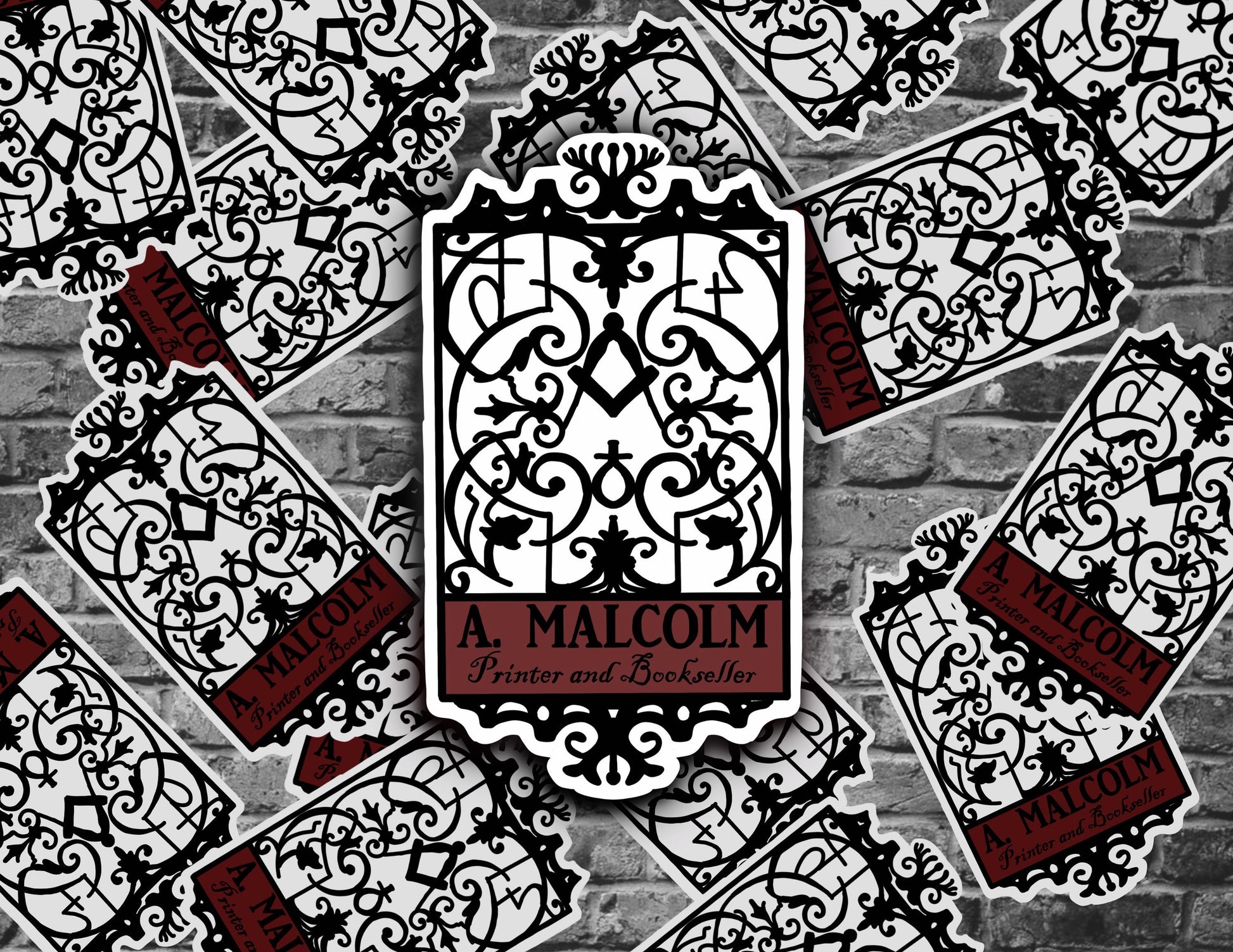 A. Malcom printer and book seller outlander Jamie Fraser Claire sticker decal laptop bottle tumbler