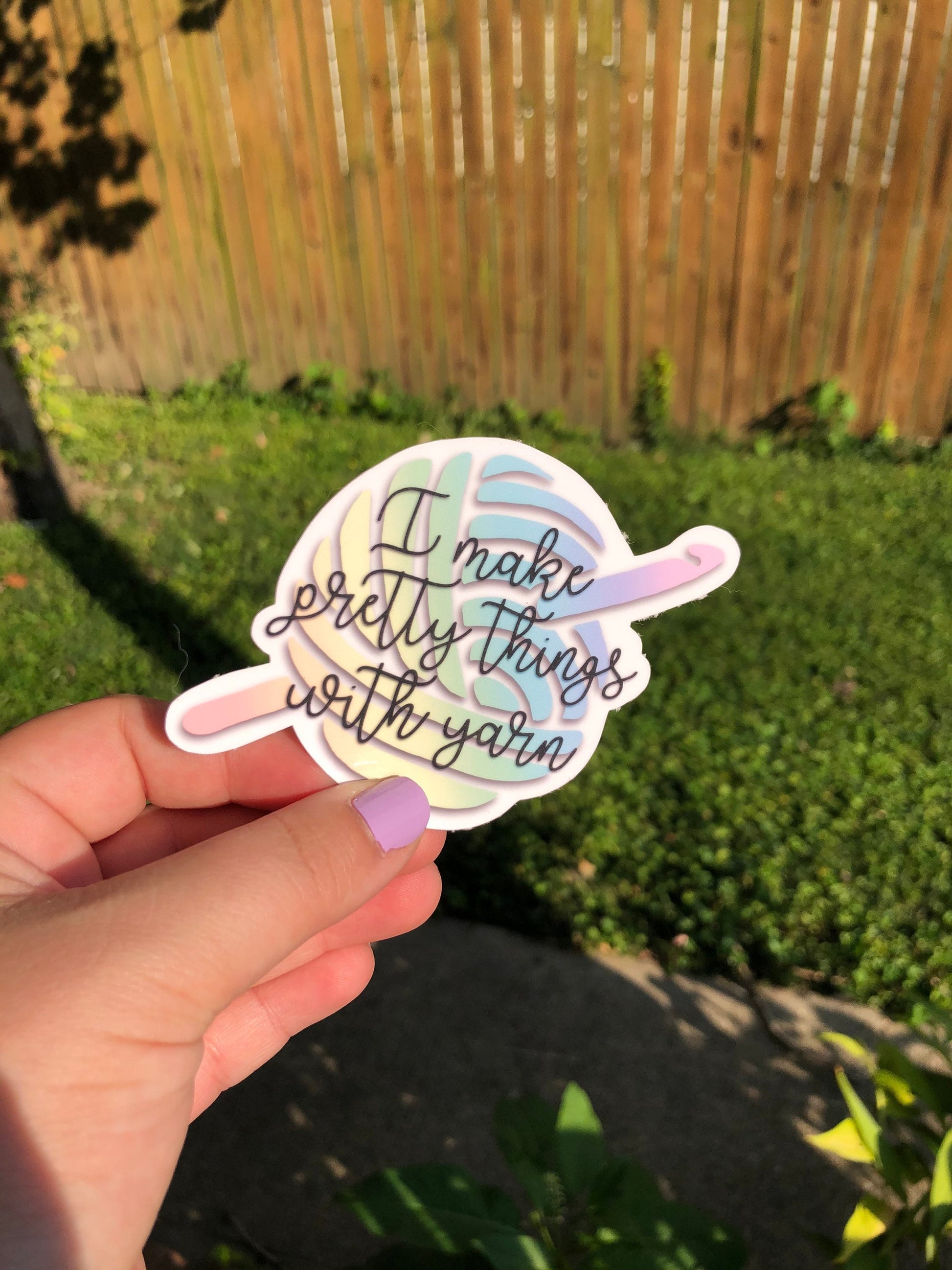 Rainbow yarn crochet I make pretty things with yarn laptop sticker decal